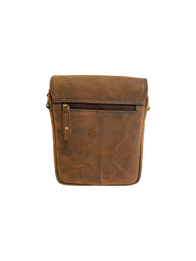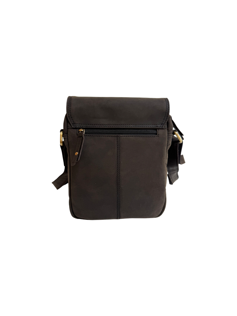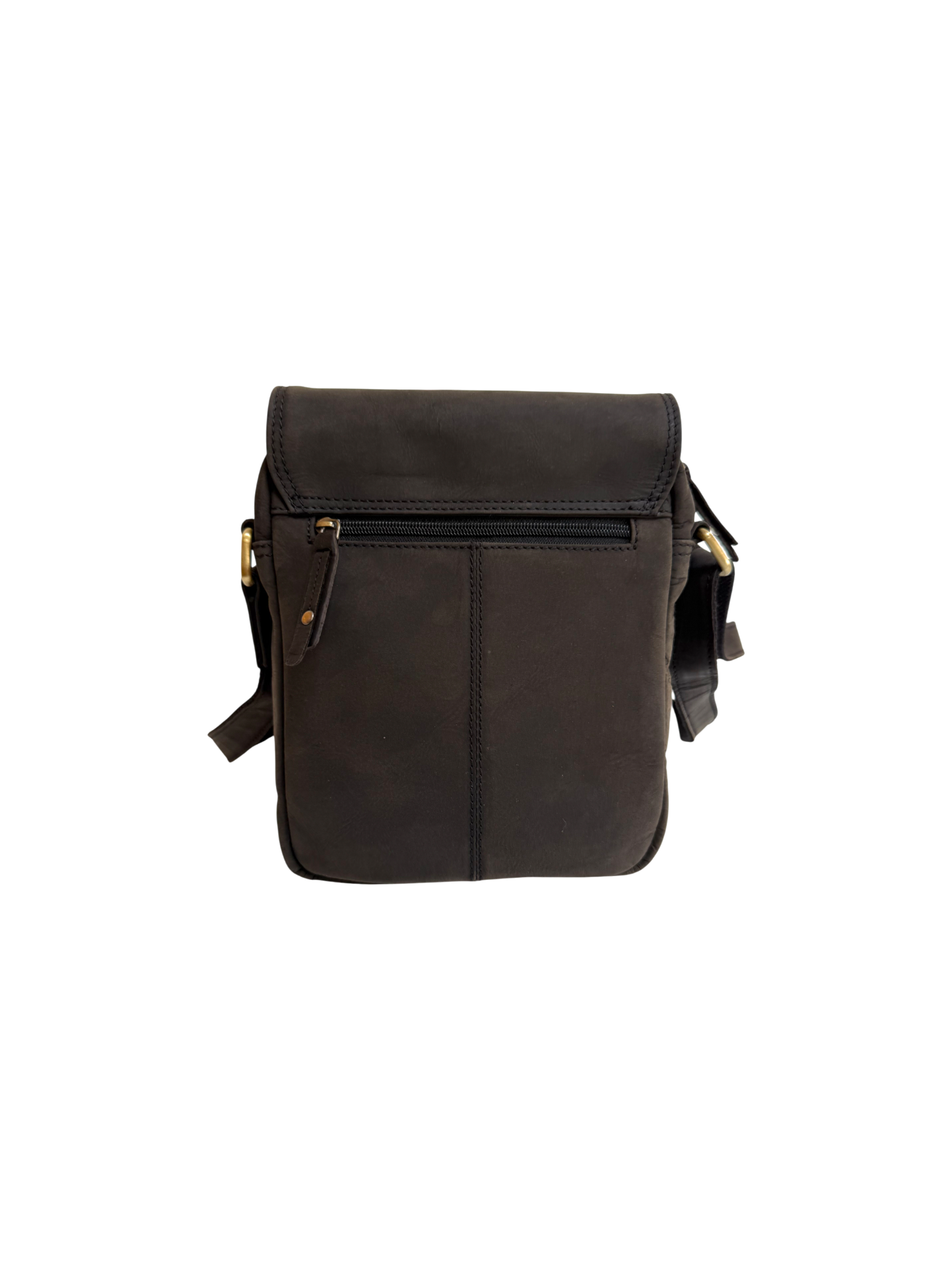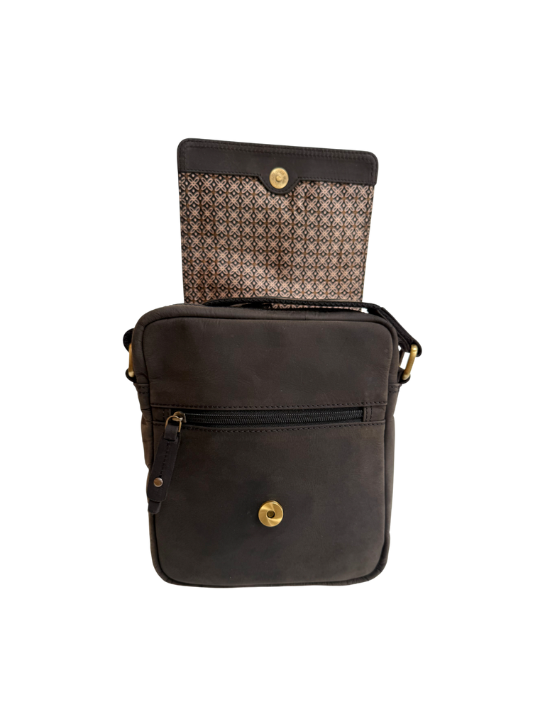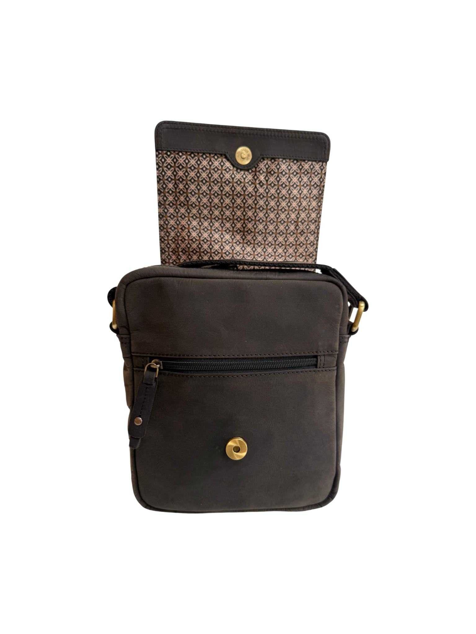 The sleek front flap with magnetic button fastening keeps your belongings secure while maintaining a clean, modern look. Beneath the flap, a discreet front zip compartment offers convenient access to essentials. Inside, you’ll find a spacious main section with an interior zip pocket and a mobile storage pouch, ensuring everything stays neatly organised. A rear zip compartment provides extra space to keep your valuables safe.