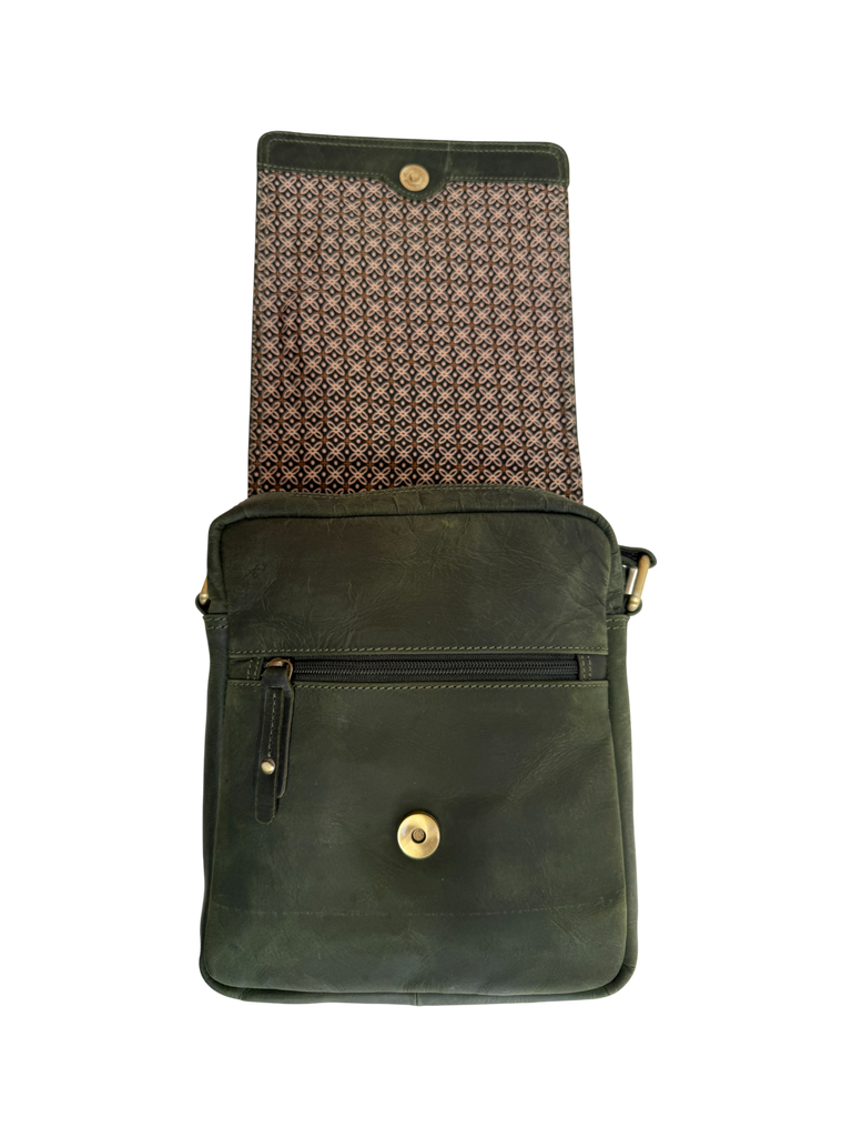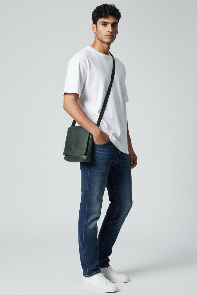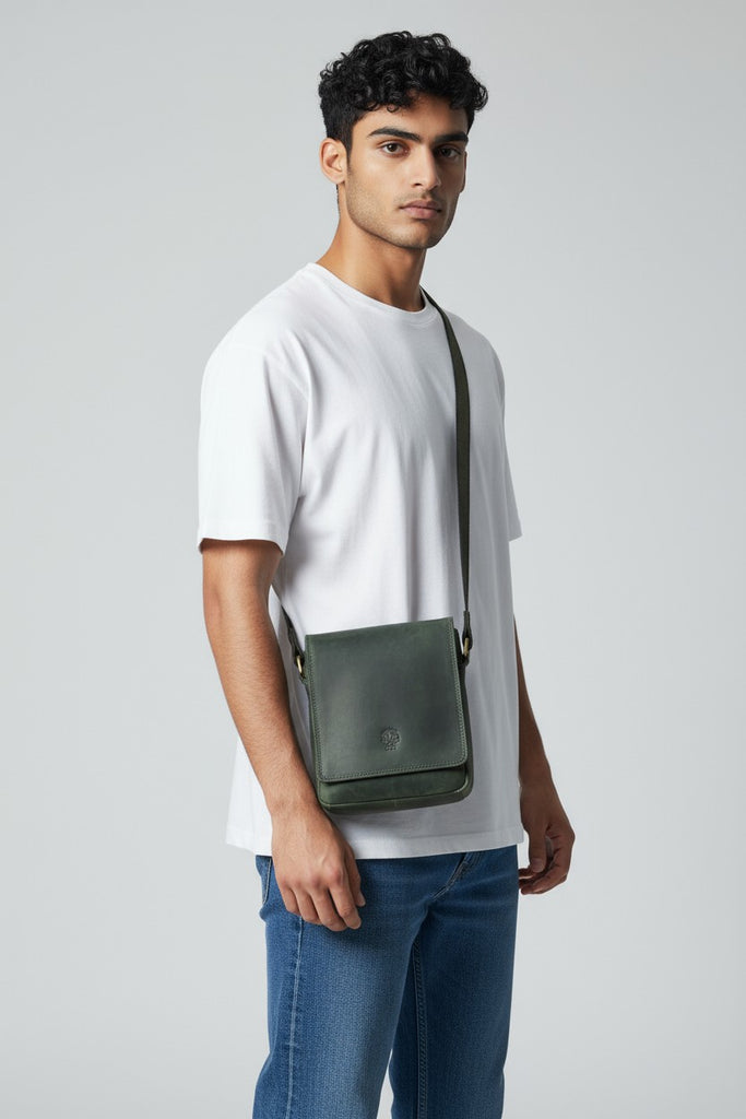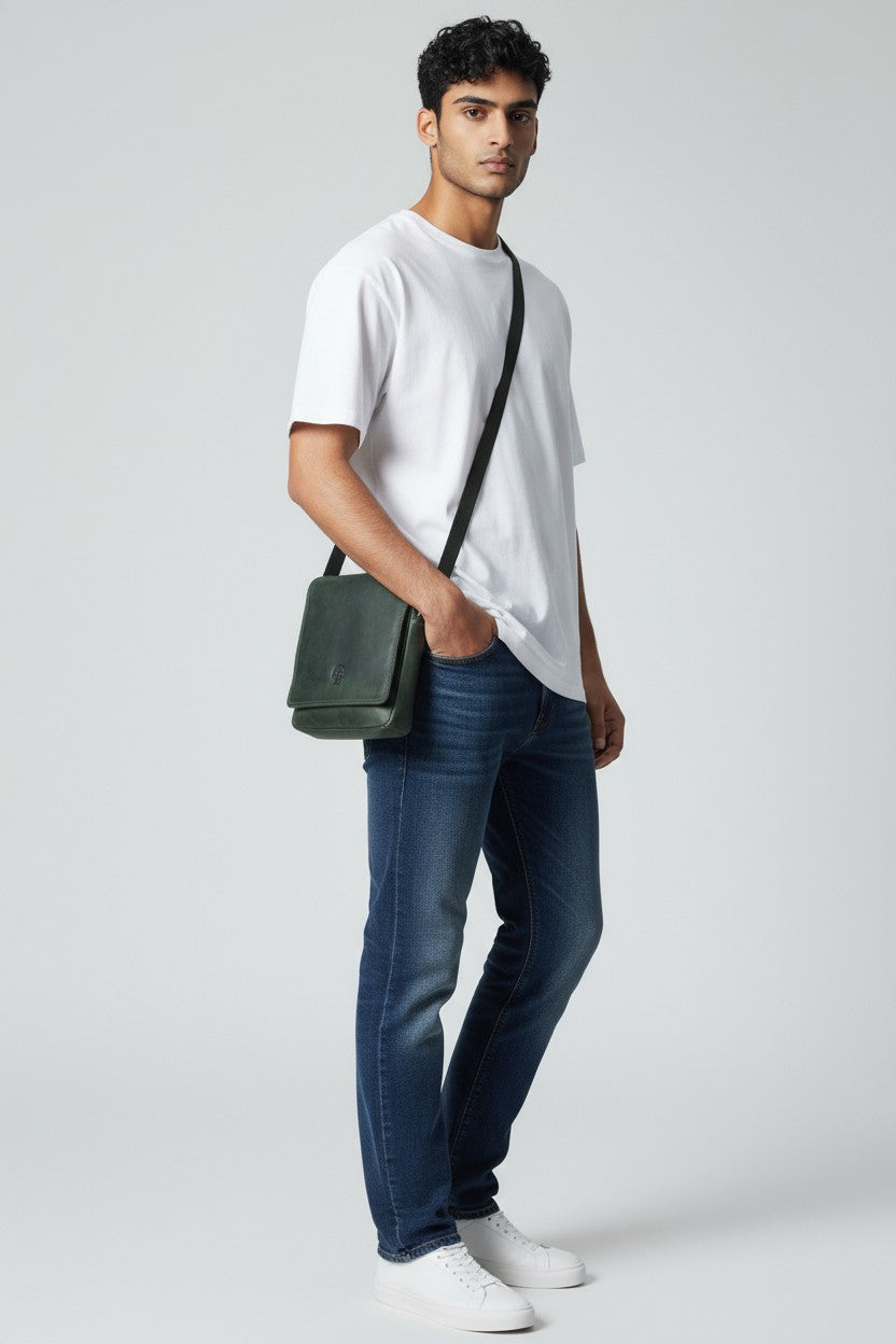 Available in a range of versatile colors—Olive Green, Dark Brown, Black, Teal Green, and Tan—this messenger bag complements any outfit and suits men of all ages who appreciate quality craftsmanship and timeless style.