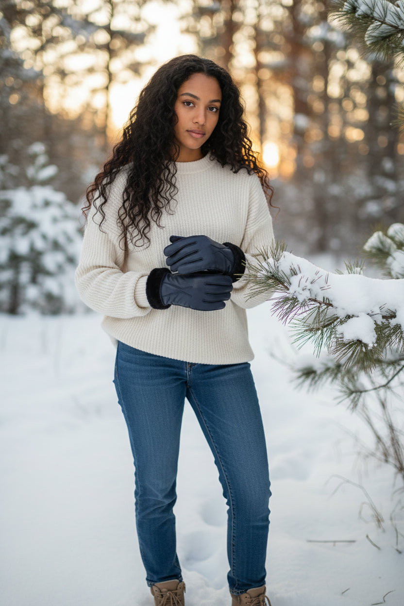 Luxurious Leather Finish: The outer material of these gloves showcases a luxurious leather finish, adding an air of sophistication to your winter attire. Whether you're heading to a glamorous event or simply stepping out for a leisurely stroll, these gloves effortlessly elevate your style.